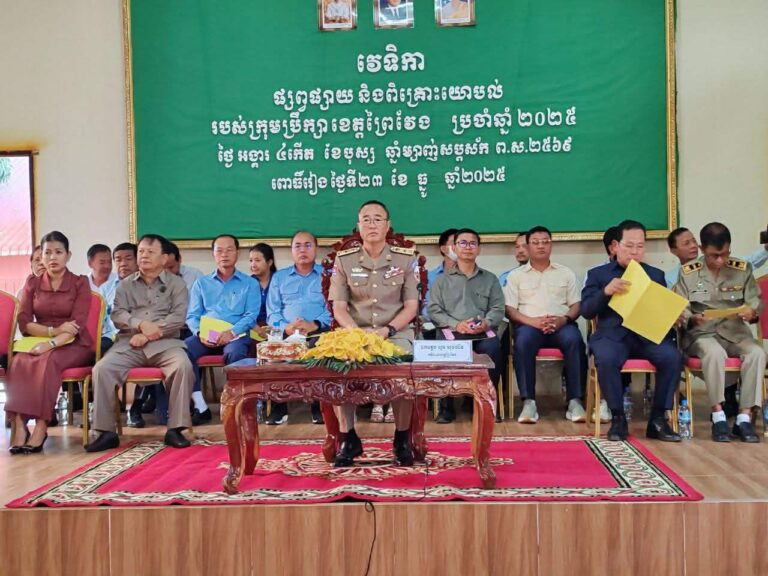 (ព្រៃវែង) : នៅរសៀលថ្ងៃទី២២ ខែធ្នូ ឆ្នាំ២០២៥នេះ ឯកឧត្តម សួន សុម៉ាលីន អភិបាល នៃគណ: អភិបាលខេត្តព្រៃវែង និងលោក ស្បោង សារ៉ាត ប្រធានក្រុមប្រឹក្សាខេត្ត រួមជាមួយ លោក ហ៊ឺ បាវី ប្រតិភូរាជរដ្ឋាភិបាលទទួលបន្ទុកជាប្រធានអគ្គនាយកកំពង់ផែស្វយ័តភ្នំពេញ…