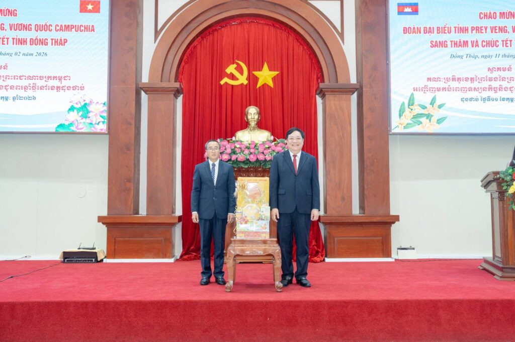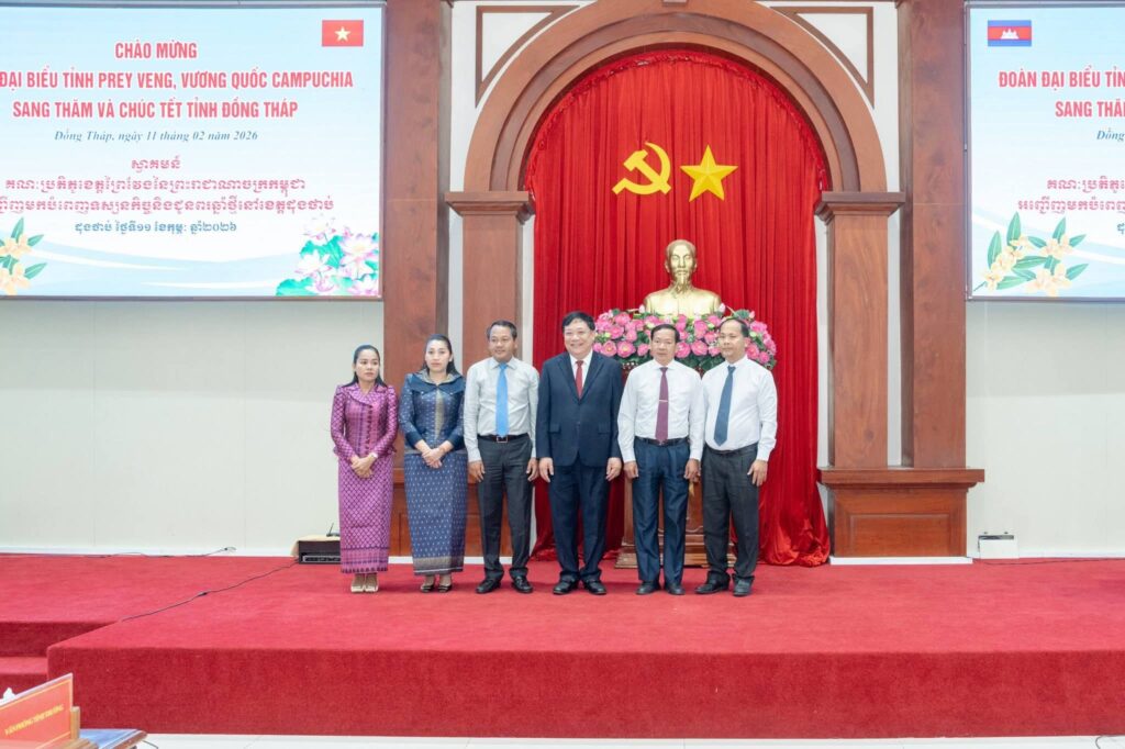 នៅព្រឹកថ្ងៃពុធ ទី១១ ខែកុម្ភៈ ឆ្នាំ២០២៦ ឯកឧត្តម សួន សុម៉ាលីន អភិបាល នៃគណ: អភិបាលខេត្តព្រៃវែង និងឯកឧត្តម ស្បោង សារ៉ាត ប្រធានក្រុមប្រឹក្សាខេត្ត រួមជាមួយថ្នាក់ដឹកនាំខេត្តព្រៃវែង បានអញ្ជើញបំពេញទស្សនកិច្ច និងចូលរួមពិធីអបអរសាទរជូនពរឆ្នាំថ្មីប្រពៃណីជាតិវៀតណា ឆ្នាំមមី អដ្ឋស័ក គ្រិស្តសករាជ ២០២៦ ដែលពិធីនេះប្រព្រឹត្តទៅនៅខេត្តដុងថាប់ ប្រទេសវៀតណាម។