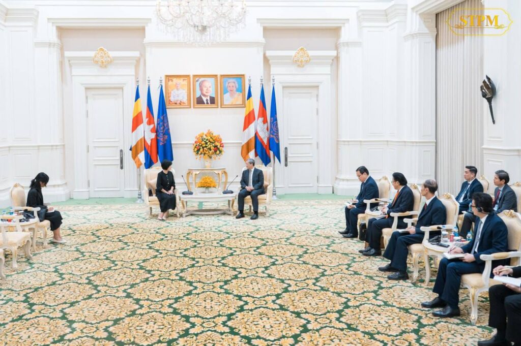 ជួបជាមួយ លោកជំទាវ TEO Lay Cheng ឯកអគ្គរដ្ឋទូតសិង្ហបុរី ប្រចាំព្រះរាជាណាចក្រកម្ពុជា ក្នុងជំនួបសម្តែងការគួរសម និងជម្រាបលា នៅវិមានសន្តិភាព។