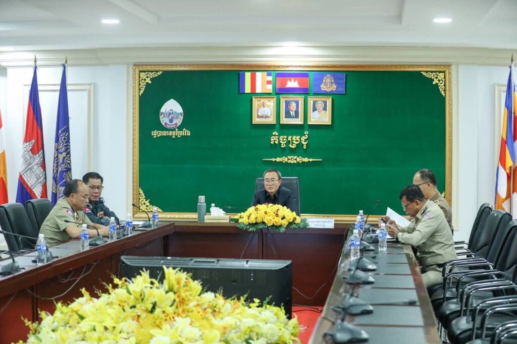 អភិបាលខេត្តព្រៃវែង អញ្ជើញចូលរួមក្នុងកិច្ចប្រជុំប្រចាំសប្តាហ៍ដើម្បីតាមដានវឌ្ឍនភាពការងារបង្រ្កាបបទល្មើសការឆបោកតាមប្រព័ន្ធបច្ចេកវិទ្យា (online Scams)