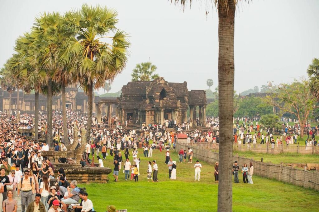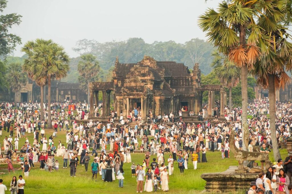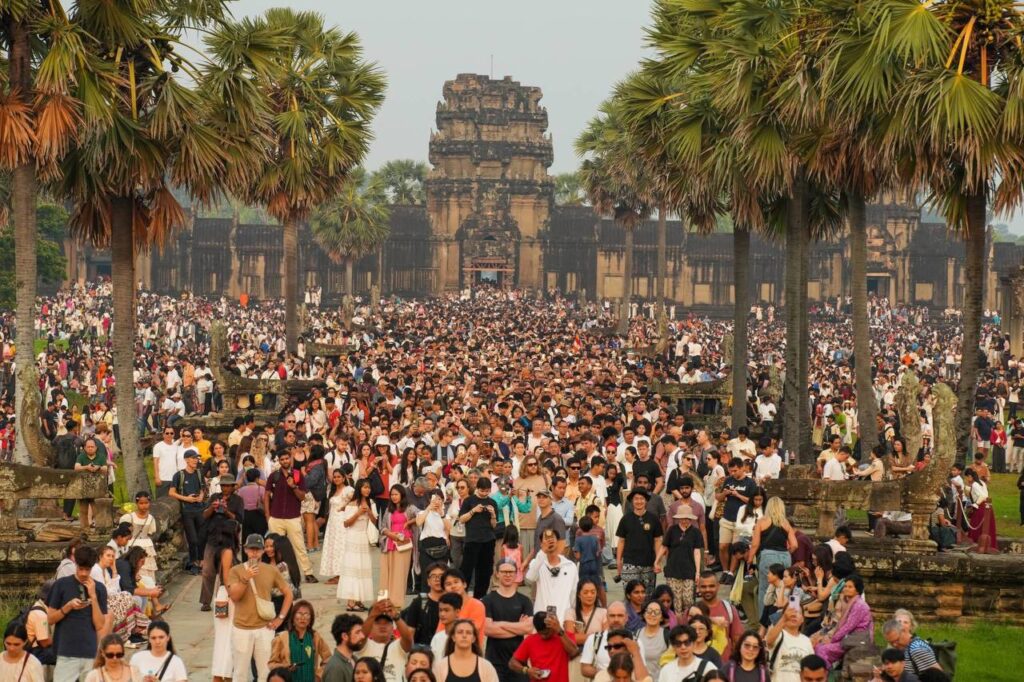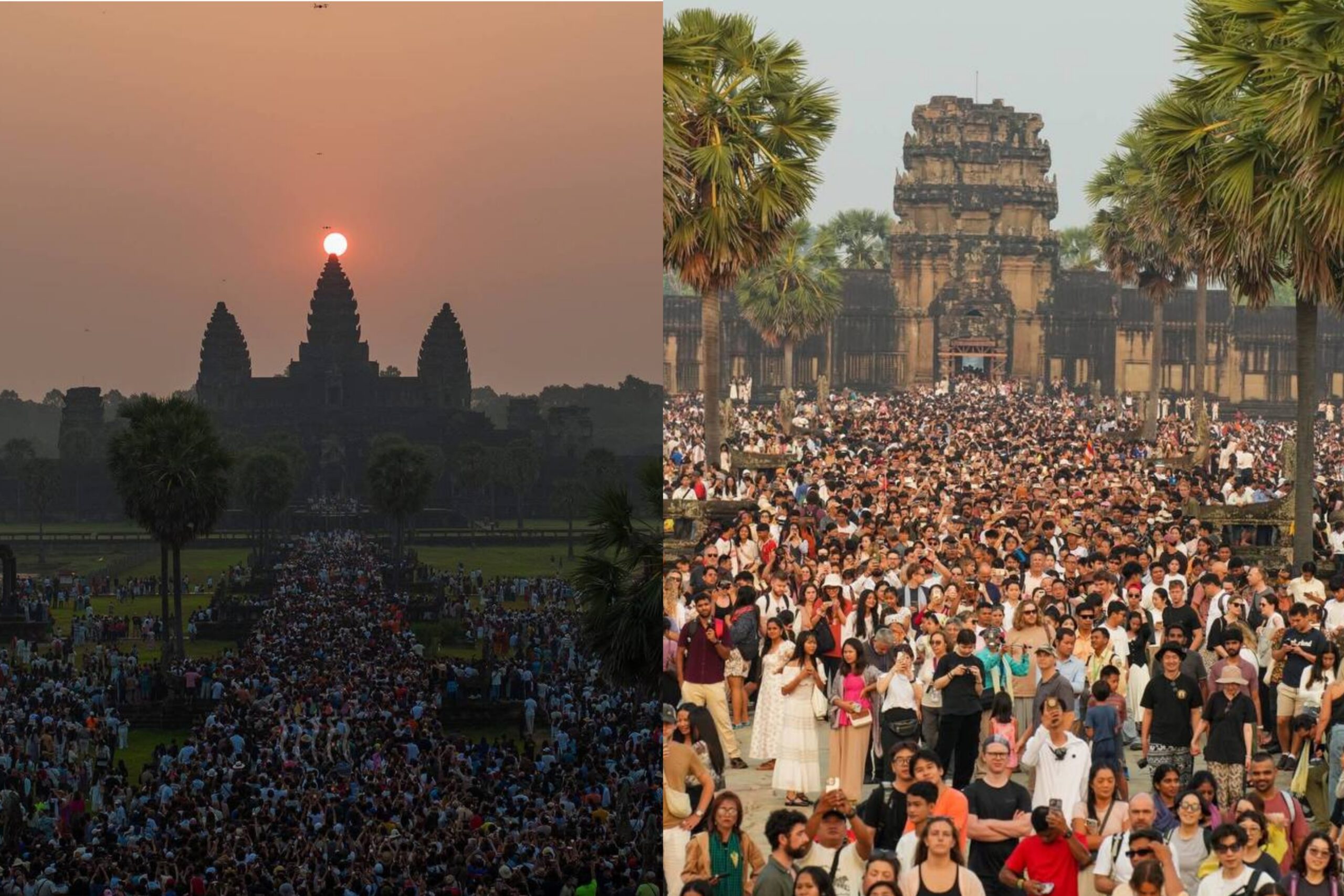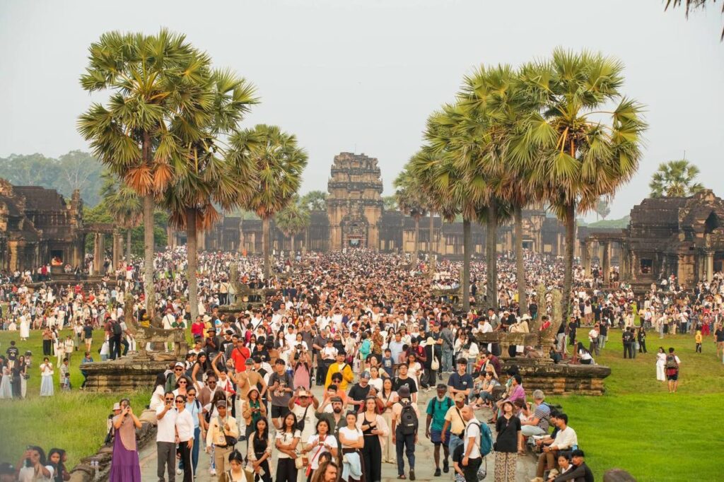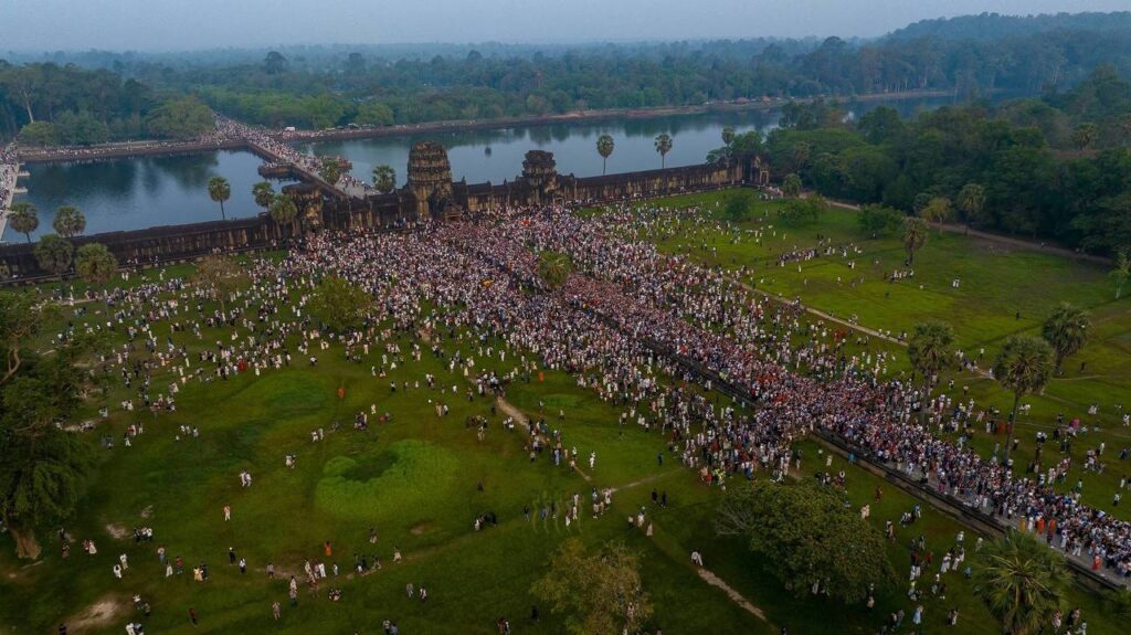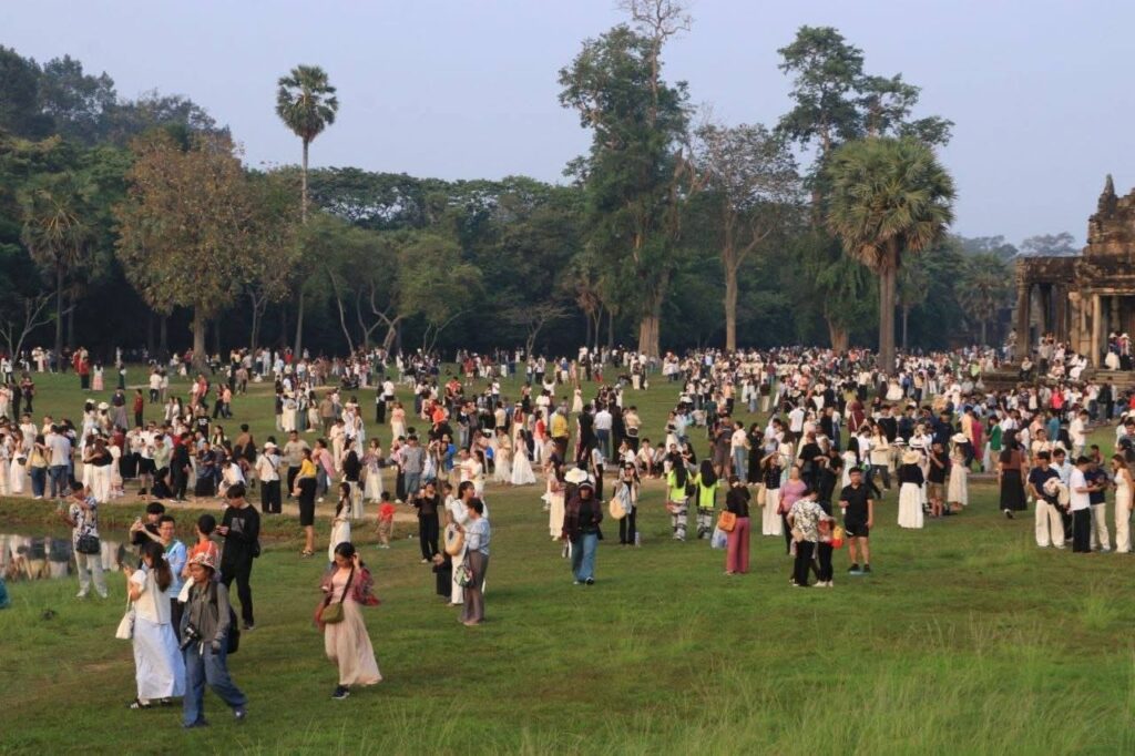 (សៀមរាប)៖ ភ្ញៀវទេសចរជាតិ និងអន្តរជាតិជាង ៣ម៉ឺននាក់ នាព្រឹកព្រលឹមថ្ងៃទី២២ ខែមីនា ឆ្នាំ២០២៦ បានធ្វើដំណើរមកពីគ្រប់ទិសទី ដើម្បីទស្សនាព្រឹត្តិការណ៍សមរាត្រី (Equinox) ដែលជាទិដ្ឋភាពព្រះសូរិយារះឡើងចំកំពូលប្រាង្គកណ្តាលនៃប្រាសាទអង្គរវត្តយ៉ាងស្រស់ត្រកាលបំផុត។ នេះបើយោងតាមការឲ្យដឹងរបស់អាជ្ញាធរជាតិអប្សរា។ ព្រឹត្តិការណ៍សមរាត្រី (Equinox) ជាភស្តុតាងដែលបង្ហាញពីចំណេះដឹងផ្នែកតារាសាស្ត្រ និងស្ថាបត្យកម្មដ៏ខ្ពង់ខ្ពស់នៃអាណាចក្រខ្មែរ។ ចំពោះភ្ញៀវទេសចរដែលមិនទាន់បានមកទស្សនា នៅតែអាចមកគយគន់ទិដ្ឋភាពដ៏អស្ចារ្យនេះបានរហូតដល់ថ្ងៃទី២៣ ខែមីនា ឆ្នាំ២០២៦៕