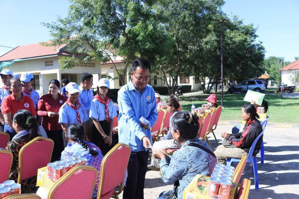 គ្រួសារភៀសសឹក ចំនួន ៧១គ្រួសារ នៅក្រុងព្រៃវែង និងស្រុកពោធិ៍រៀង ខេត្តព្រៃវែង ទទួលបានអំណោយមនុស្សធម៌ពីសាខាកាកបាទក្រហមកម្ពុជា ខេត្តព្រៃវែង