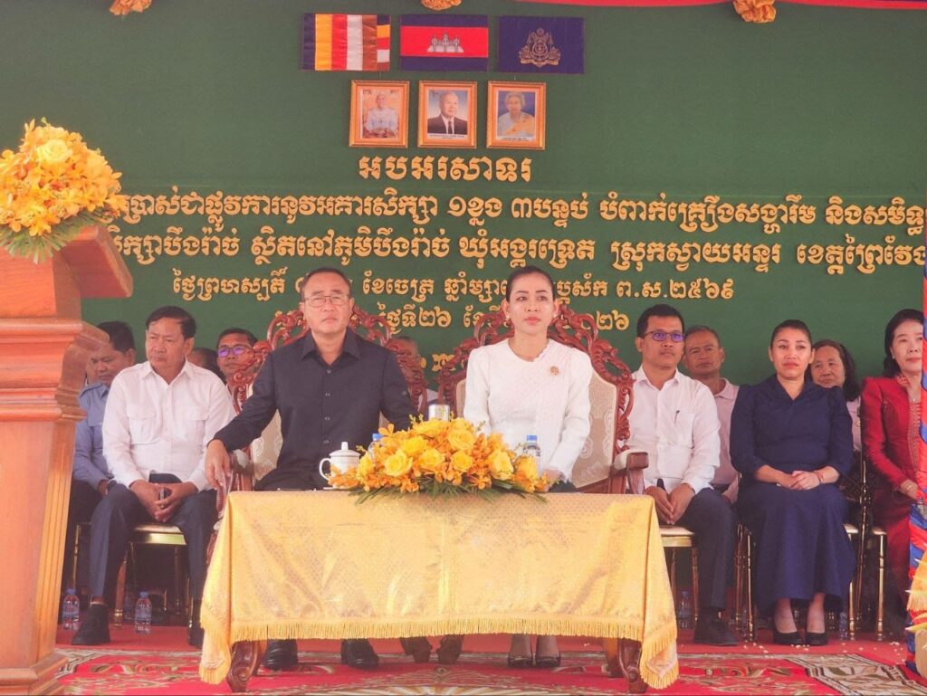 (ព្រៃវែង) : នៅថ្ងៃទី ២៦ ខែមីនា ឆ្នាំ២០២៦ ឯកឧត្ដម សួន សុម៉ាលីន អភិបាលខេត្តព្រៃវែង និងលោកជំទាវ បានអញ្ជើញពិធីសម្ពោធដាក់ឱ្យប្រើប្រាស់នូវ អគារសិក្សាថ្មី ១ខ្នង មាន ៣បន្ទប់ និងសមិទ្ធផលនានា នៅសាលាបឋមសិក្សាបឹងរ៉ាច់ ស្ថិតក្នុងភូមិបឹងរ៉ាច់ ឃុំអង្គទ្រេត ស្រុកស្វាយអន្ទរខេត្តព្រៃវែង។