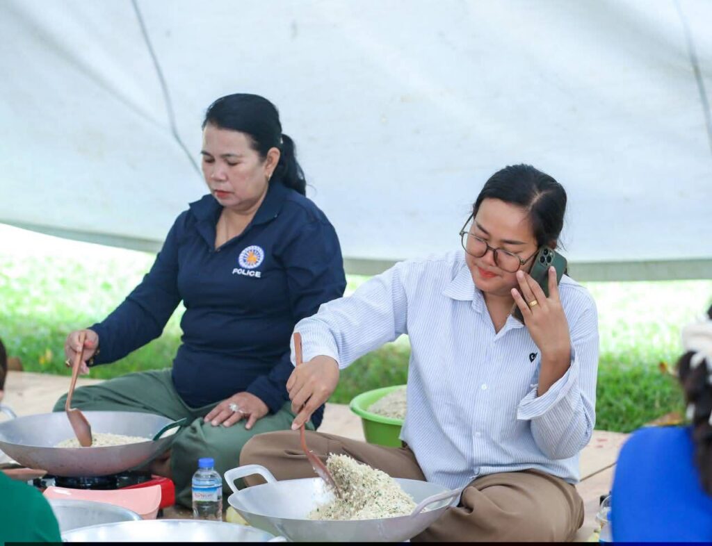 (ព្រៃវែង)៖ ស្របជាមួយពាក្យស្លោករបស់សម្ដេចតេជោ ហ៊ុន សែន ប្រធានព្រឹទ្ធសភានៃកម្ពុជា «ទទួលទានអំបុកស្រូវថ្មី វាយសត្រូវឈ្លានពាន» លោកស្រី ជុន បូរ៉ានី ភរិយារបស់ លោក សួន សុម៉ាលីន អភិបាលខេត្តព្រៃវែង និងលោកស្រីអភិបាលរងខេត្ត រួមជាមួយមន្ត្រីនៃស្នងការនគរបាលខេត្ត និងអធិការក្រុង ព្រមទាំងក្រុមការងារ បានបន្តចូលរួមលីងអំបុក ដើម្បីផ្ញើជូនដល់វីរកងទ័ពជួរមុខកម្ពុជា ដែលកំពុងឈរជើងការពារទឹកដីពីការឈ្លានពានរបស់ថៃ និងជនភៀសសឹកដែលកំពុងស្នាក់នៅមណ្ឌលសុវត្ថិភាព។