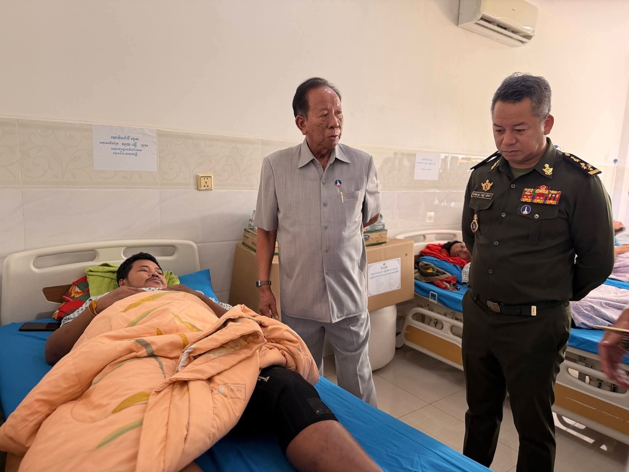 សម្តេចពិជ័យសេនា ទៀ បាញ់ និងឯកឧត្តម នាយឧត្តមសេនីយ៍ ទៀ សីហា អញ្ជើញសួរសុខទុក្ខ វីរយុទ្ធជន ដែលរងរបួសកំពុងសម្រាកព្យាបាលនៅមន្ទីរពេទ្យព្រះកេតុមាលា