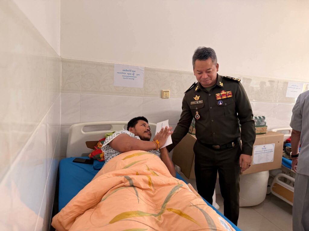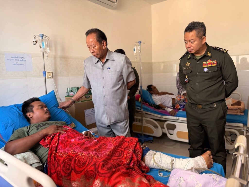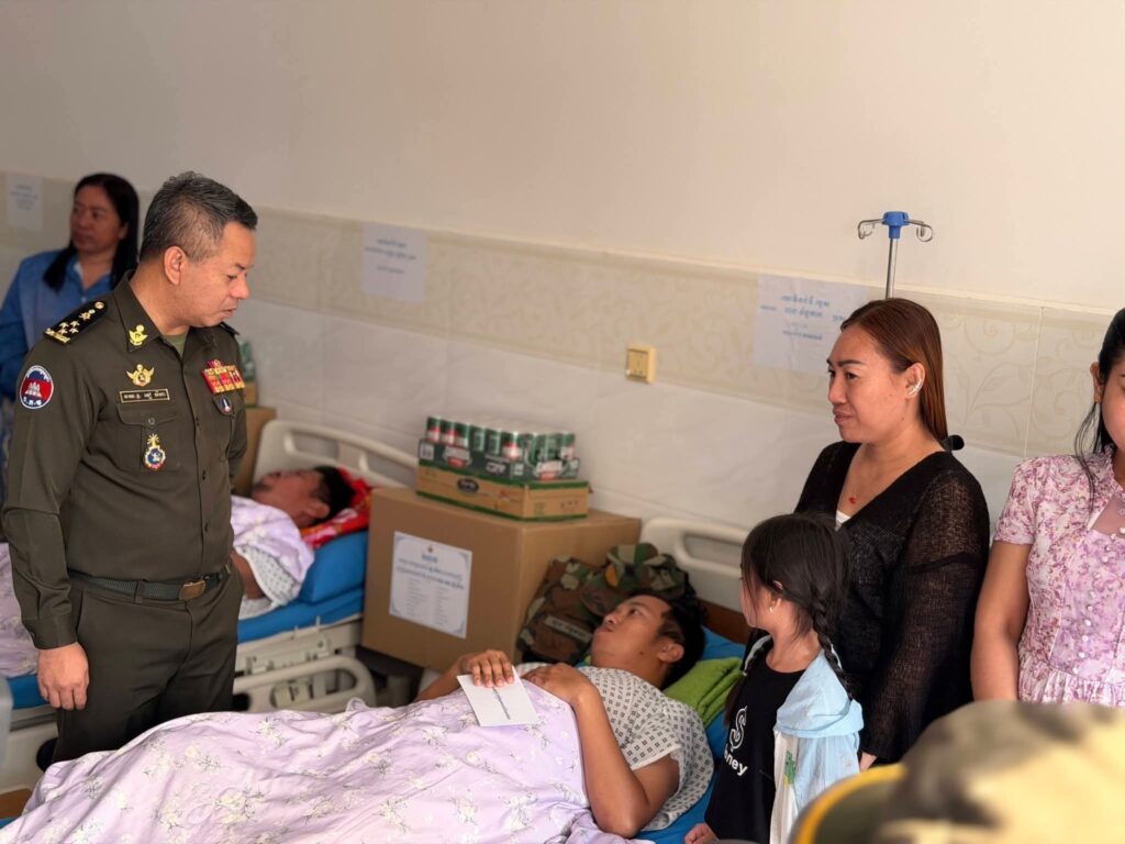 នាឱកាសនៃការចុះសួរសុខទុក្ខនេះ សម្តេចពិជ័យសេនា ទៀ បាញ់ និងឯកឧត្តមនាយឧត្តមសេនីយ៍ ទៀ សីហា បាននាំប្រសាសន៍ផ្តាំផ្ញើសួរសុខទុក្ខ និងជូនពរដ៏ខ្ពង់ខ្ពស់បំផុតរបស់សម្តេចតេជោ ហ៊ុន សែន ប្រធានឧត្តមប្រឹក្សាផ្ទាល់ព្រះមហាក្សត្រនិងជាប្រធានព្រឹទ្ធសភាភា សម្តេចកិត្តិព្រឹទ្ធបណ្ឌិត ប៊ុន រ៉ានី ហ៊ុនសែន និងសម្តេចមហាបវរធិបតី ហ៊ុន ម៉ាណែត នាយករដ្ឋមន្រ្តីនៃព្រះរាជាណាចក្រកម្ពុជា និងលោកជំទាវបណ្ឌិត សូមឱ្យវីរកងទ័ពឆាប់ជាសះស្បើយ និងមានកម្លាំងមាំមួនឡើងវិញ។