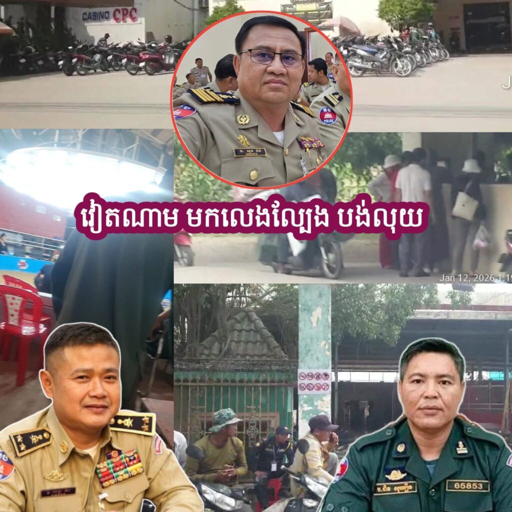 បែរជាបើកលេងល្បែងស៊ីសង ជាប្រចាំ ដោយភ្នាល់ចាក់លុយធំៗ និងកៀងគរឱ្យពលរដ្ឋខ្មែរ ចូលលេងល្បែងយ៉ាងពេញទំហឹង ភ្លូកទឹកភ្លូកដី ដោយពុំមានការទប់ស្កាត់!។