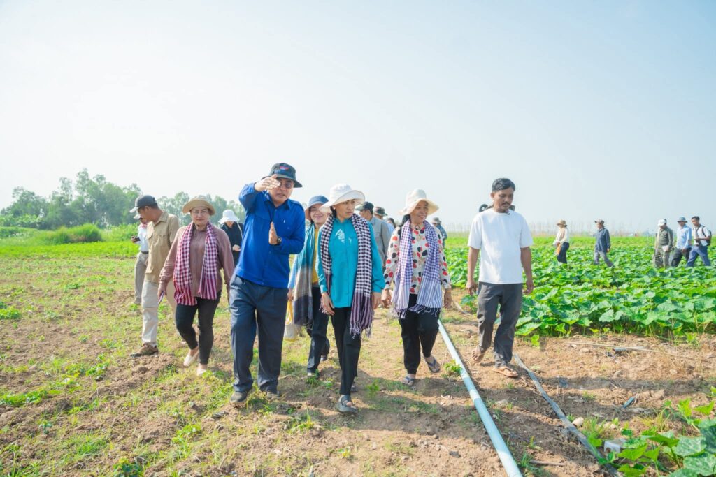 ក្នុងឱកាសនោះផងដែរ លោកជំទាវ និងក្រុមការងារបានពិនិត្យយ៉ាងយកចិត្តទុកដាក់លើការដាំដុះដំណាំរួមផ្សំជាច្រើនប្រភេទរួមមាន÷ ដំណាំល្ពៅ ល្លុង ត្រសក់ ម្រះ ប៉េងប៉ោះ ម្ទេស ខាត់ណា និងននោង ។ល។ លោកជំទាវបានកោតសរសើរចំពោះការខិតខំប្រឹងប្រែងរបស់បងប្អូនកសិករ ដែលចេះច្នៃប្រឌិតផ្ទៃដីទំនេរមកបង្កើតជាប្រភពចំណូល និងធានាបាននូវការផ្គត់ផ្គង់បន្លែសុវត្ថិភាពសម្រាប់គ្រួសារ ក៏ដូចជាទីផ្សារផងដែរ។ ជាមួយគ្នានោះ លោកជំទាវ ក៏បានលើកទឹកចិត្តឱ្យកសិករ បន្តពង្រីកការដាំដុះបន្ថែមទៀត ដោយប្រើប្រាស់បច្ចេកទេសកសិកម្មឱ្យបានត្រឹមត្រូវ ដើម្បីបង្កើនទិន្នផល គុណភាពដំណាំសម្រាប់រក្សាសន្តិសុខស្បៀង និងអាជីវកម្មបង្កើតចំណូលក្រៅប្រព័ន្ធ សំដៅលើកកម្ពស់ជីវភាពរស់នៅប្រចាំថ្ងៃឱ្យកាន់តែមានភាពប្រសើរឡើង។