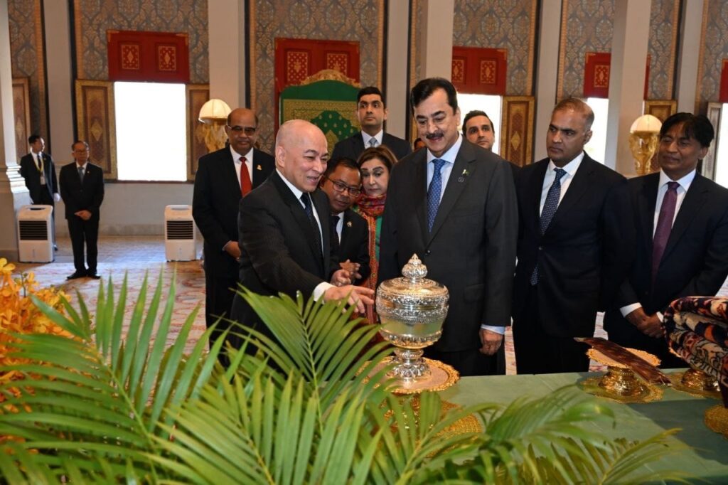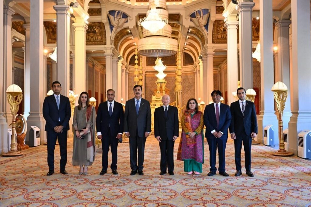ព្រះមហាក្សត្រនៃកម្ពុជា ព្រះរាជានុញ្ញាតឲ្យប្រធានព្រឹទ្ធសភាប៉ាគីស្ថាន ចូលក្រាបបង្គំគាល់ (ភ្នំពេញ)៖ នៅព្រឹកថ្ងៃទី៣ ខែកុម្ភៈ ឆ្នាំ២០២៦នេះ លោក ស៊ីយ៉េដ យូសាហ្វ រ៉ាសា ហ្គីឡានី (Syed Yusuf Raza Gillani) ប្រធានព្រឹទ្ធសភា នៃសាធារណរដ្ឋអ៊ីស្លាមប៉ាគីស្ថាន បានចូលក្រាបបង្គំគាល់ ព្រះករុណា ព្រះបាទ សម្តេចព្រះបរមនាថ នរោត្តម សីហមុនី ព្រះមហាក្សត្រនៃព្រះរាជាណាចក្រកម្ពុជា ជាទីគោរពសក្ការៈដ៏ខ្ពង់ខ្ពស់បំផុត នៅព្រះបរមរាជវាំង ក្នុងឱកាសដឹកនាំគណៈប្រតិភូព្រឹទ្ធសភាប៉ាគីស្ថាន អញ្ជើញមកបំពេញទស្សនកិច្ចផ្លូវការ នៅព្រះរាជាណាចក្រកម្ពុជា ពីថ្ងៃទី២-៥ ខែកុម្ភៈ ឆ្នាំ២០២៦៕